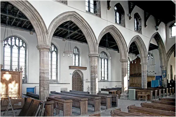 The two nave arcades and aisles were rebuilt in the 14th century which is reflected by the style of the arch moulding.