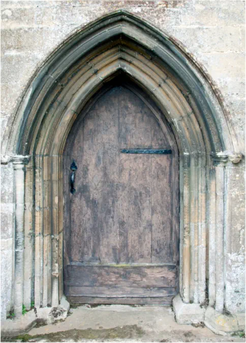 jambs, and hollows of the hood mould, the tracery being of the “net” or “reticulated “ kind), and the square-headed