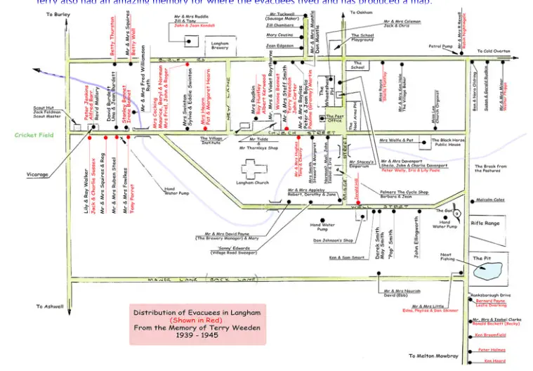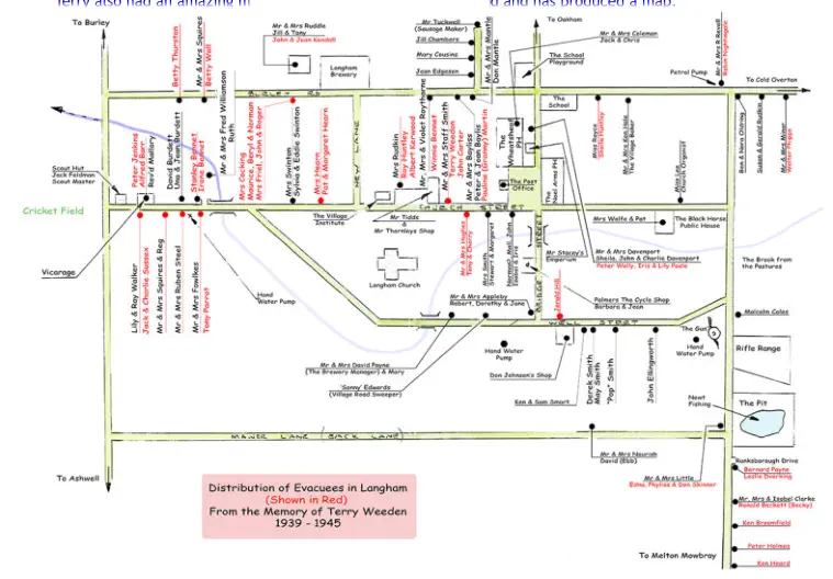Terry Weeden was eight years old when he arrived from Walthamstow to experience for the first time the delights of village life - his bedroom looked down on Staff Smith’s farmyard. He remembers: seeing hams curing; new born lambs; tree climbing; fishing for newts; jumping over the brook and playing on “The Gun”. Summers were long, with tea in the hayfields, and the almost certain heavy snow each winter brought the delights of sledging on the Rifle Range. The first schoolroom for the evacuees was the old Scout Hut, where, Terry recalls the inkwells froze. Terry also had an amazing memory for where the evacuees lived and has produced a map. Terry was paid twopence by John Carter’s mother, to keep an eye on him and the two sat together on their journey to Langham and were asked by Mrs Staff Smith if they would like to stay on a farm. The boys accepted, though John says he had little idea of what a farm was. “On entering her home I was awe-struck by the living room with its Welsh dresser, armchairs and brass warming pans hanging each side of a large fireplace containing the kitchen range. The place seemed so strange and luxurious and ‘posh’ that when Mrs Smith asked us what we would like to eat and drink I suggested the two most expensive and exotic things I had heard of: ‘wedding cake and whisky’, (a request Mrs Smith could recall to her old age); I got bread and cheese and a glass of warm milk. September 3 rd 1939 was a significant day. John listened to the broadcast which told him that “we were at war with a place called Germany and, soon after, Mr Smith took his wife and us boys for a ride in his Ford 8 Saloon, oh joy of joys! John recalls being “educated” in the School, Institute and Scout Hut where he says he must have learned a few things such as ‘real writing. “Our relations with the village children were at first wary... After a while though, as we settled down, we grew used to each other and some friendships were formed.” When the older boys played football outside the Scout Hut the smaller boys had to join in or clear off. John did not like football so took the latter option and says there was plenty to clear off to. “Fields and hills, trees and streams to play round, using one’s school cap to help dam a small stream in the pasture by the Cold Overton Road was a marvellous way of spending a summer morning, even if the penalty was a ticking off for getting the cap in ‘such a state’. Trespassing on and scaling the gorse covered slopes of Ranksborough Hill ... Even being chased from an orchard by an old man in breeches and carrying a crop had its thrills. John and Terry sang in the church choir and John remembers enjoying the singing, particularly the carol services when another Mr Smith sang the king and Terry the page in ‘Good King Wenceslas’. The boys were also taught the value of saving money, and with Mrs Smith controlling their spending, John recalls having about £21 in his Post Office Savings Bank Account by the time he returned home. Home life was very different from that in Langham and evacuation was an unsettling experience for John, not least because return to London meant parting from Terry who had become an older brother.