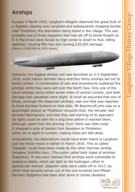 a Zeppelin passing over Langham and subsequently dropping bombs